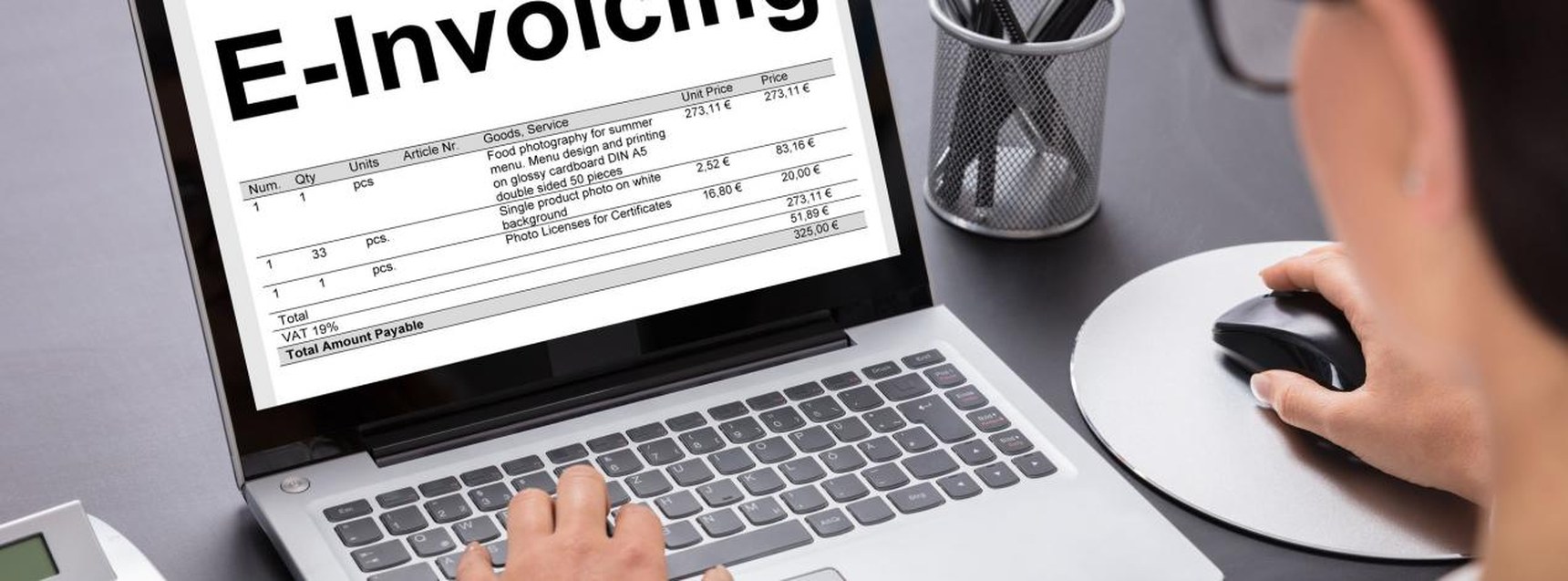 La facturation électronique, également connue sous le nom d'E-facturation ou d'E-invoicing, est un processus par lequel les factures sont établies, envoyées, reçues et traitées électroniquement. Pour être clair, la facturation électronique ne concerne pas une facture que vous envoyez par E-mail sous forme de fichier PDF ou Excel. En effet, ces fichiers PDF ou Excel ne peuvent pas être traités automatiquement par le client.